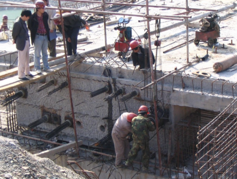 在作業(yè)時,將手拉葫蘆懸掛在由平行雙軌、車架組成的移動車上,用葫蘆的下吊鉤吊起張拉千斤頂,隨著深度的不斷變化而來回移動葫蘆,通過葫蘆調(diào)整千斤頂高低位置,進行預(yù)應(yīng)力筋預(yù)應(yīng)力筋張拉。